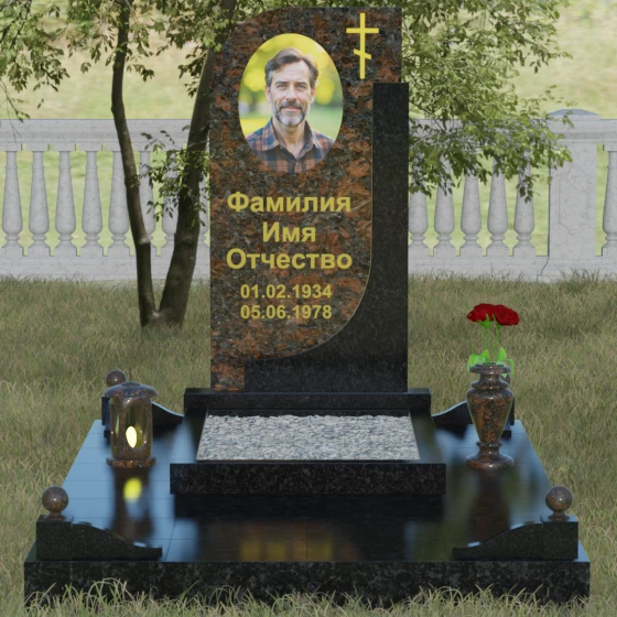 Кому подойдет: Данная модель является универсальной и гармонично впишется в мемориальный комплекс как для мужчины, так и для женщины. Асимметричная форма с плавным изгибом придает памятнику определенную легкость, что часто выбирают для оформления захоронений матерей или жен. В то же время строгая вертикальная колонна и золоченая символика делают его подходящим для увековечивания памяти отца, брата или главы семейства. Это выбор тех, кто ценит эстетику минимализма, надежность натуральных материалов и хочет подчеркнуть преемственность поколений и крепость семейных уз.