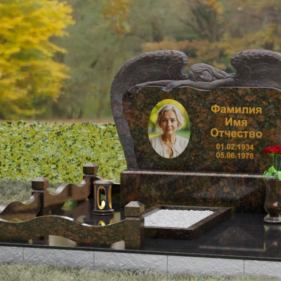 Оформление: Благодаря большой площади горизонтальной плиты, эта модель идеально подходит для размещения крупного художественного портрета и каллиграфических надписей. Мы рекомендуем использовать глубокую гравировку с последующим покрытием сусальным золотом или «под золото», что в сочетании с темными видами гранита подчеркнет статусность и величие монумента.