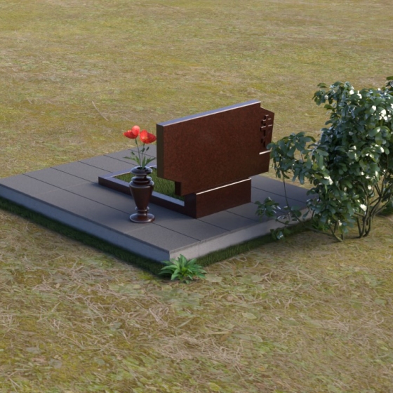 Геометрия модели продумана до мелочей. От основания, надежно опирающегося на землю, взгляд плавно поднимается вверх, к вершине стелы. Прямоугольная подставка создает ощущение стабильности и незыблемости. Надгробная плита, выполненная в едином стиле со стелой, служит местом для возложения цветов и памятных вещей. Завершает композицию изящная ваза, предназначенная для живых или искусственных цветов, символизирующих неувядающую память и любовь.