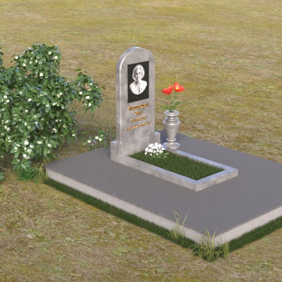 Форма арки, выбранная для стелы, символизирует переход из земной жизни в вечность. Она словно врата, открывающиеся в иной мир, полный покоя и света. Закругленные грани стелы говорят о мягкости и доброте ушедшего человека, о его способности сострадать и любить. Зеркальная полировка подставки отражает надежду на светлое будущее и веру в бессмертие души. В целом, мемориальная композиция излучает чувство защищенности и умиротворения, создавая атмосферу тихой скорби и светлой памяти.