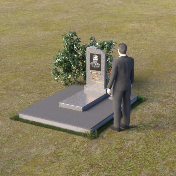 Геометрия модели продумана до мельчайших деталей. Начиная с основания, мы видим широкую плиту, обеспечивающую устойчивость всей конструкции. На ней возвышается горизонтальная плита меньшего размера, выполненная в зеркальной полировке, отражающая небо и окружающий мир, словно запечатлевая в себе мгновения жизни. Вертикальная стела, возвышающаяся над плитой, имеет сглаженные углы и плавные переходы, смягчающие строгость формы. Верхняя часть стелы, с ее деликатными сколами, придает ей уникальность и неповторимость. Рядом со стелой располагается небольшая ваза, выполненная в том же стиле, предназначенная для живых цветов, символизирующих вечную память и любовь.