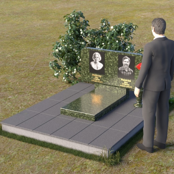 Оформление: Для данной формы стелы идеально подойдет гравировка портретов в овальной или прямоугольной форме. Расположение портретов может быть как симметричным, так и асимметричным, в зависимости от ваших предпочтений. Имена и даты жизни рекомендуется располагать под портретами, используя элегантный шрифт с засечками. Также можно добавить эпитафию, отражающую личность усопшего и вашу любовь к нему.