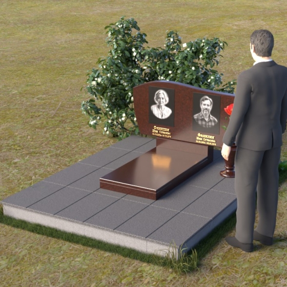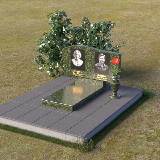 Оформление: Для этой формы стелы рекомендуется выбирать портреты с четкими контурами, чтобы гравировка максимально точно передала образ усопшего. Имена и даты рождения можно разместить под портретами, используя элегантный шрифт с золотым напылением, что придаст ритуальному изделию дополнительную торжественность.