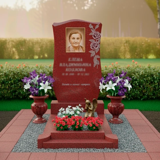 • Гранит Лезниковский: насыщенный красный цвет с черными вкраплениями, придающий изделию особую торжественность.